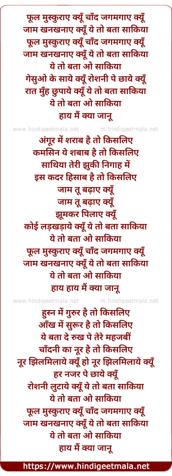 Lyrics of Phul Muskurayen Kyu - फूल मुस्कुराये क्यूँ
