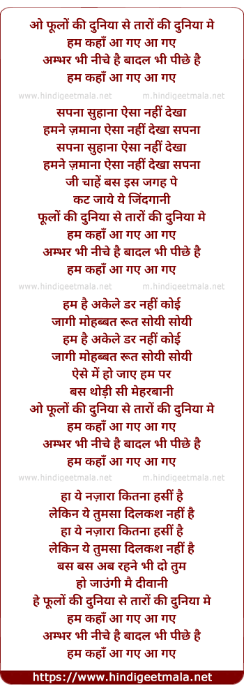 hey phulo ki duniya se taro ki duniya me
