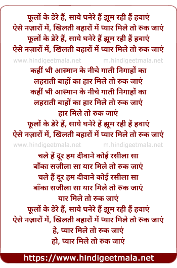 aise nazaaro me, khilati bahaaro me pyar mile to ruk jaaye