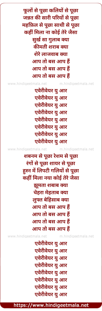 Lyrics of Phulon Se Puchha Kaliyon Se Puchha - फूलों से पूछा कलियों से पूछा