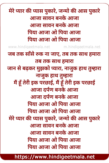 Lyrics of Piya Aaja O Piya (Sad) - मेरे प्यार की प्यास पुकारे, जन्मो की आस पुकारे