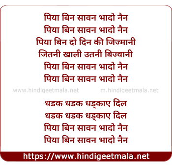 Poetic Translation - Lyrics of Piya Bin Sawan Bhado Nain