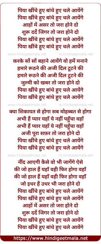 Lyrics of Piya Khinche Hue Bandhe Hue - पिया खींचे हुए बांधे हुए