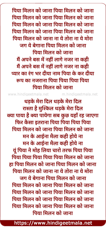 Lyrics of Piya Milan Ko Jaana - पिया मिलन को जाना
