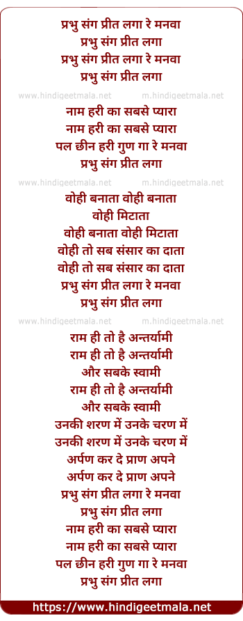 Lyrics of Prabhu Sang Preet Laga Re Manwa - प्रभु संग प्रीत लगा रे मनवा
