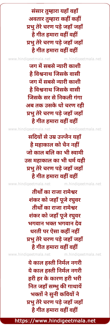 Lyrics of Prabhu Tere Charan Pade Jaha Jaha - प्रभु तेरे चरण पड़े जहाँ जहाँ