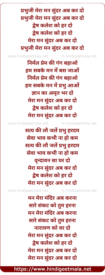 Lyrics of Prabhuji Mera Man Sundar Ab Kar Do - प्रभुजी मेरा मन सुंदर अब कर दो