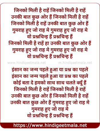 jinko mili hai raahe jinko mili hai raahe