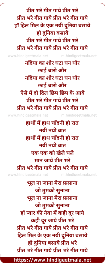 Lyrics of Preet Bhare Geet Gaye - प्रीत भरे गीत गाये