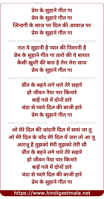 Lyrics of Prem Ke Suhane Geet Ga - प्रेम के सुहाने गीत गा