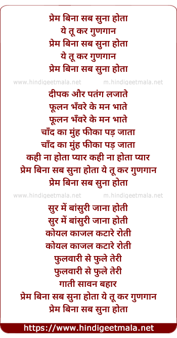 Lyrics of Prem Bina Sab Suna Hota - प्रेम बिना सब सुना होता