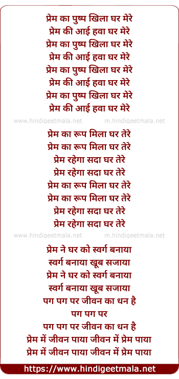 Lyrics of Prem Ka Pushp Khila Ghar Mere - प्रेम का पुष्प खिला घर मेरे
