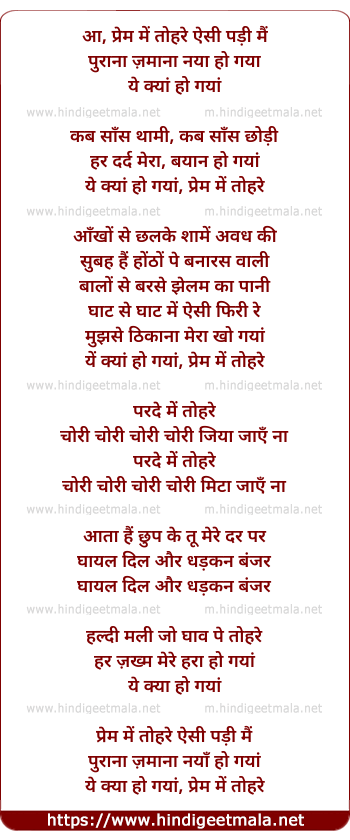 Poetic Translation - Lyrics of Prem Mein Tohre Aise Padi Main (Reprise) - प्रेम में तोहरे ऐसी पड़ी मैं ( रेप्रिसे)