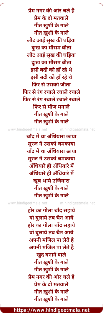 Lyrics of Prem Nagar Ki Aur Chale Hai - प्रेम नगर की ओर चले है