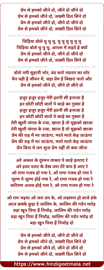 Lyrics of Prem Se Humko Jeene Do - प्रेम से हमको जीने दो