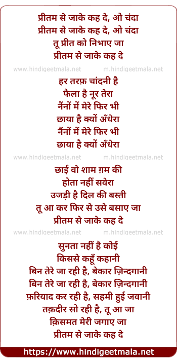 Lyrics of Pritam Se Jake Kah De - प्रीतम से जाके कह दे, ओ चंदा