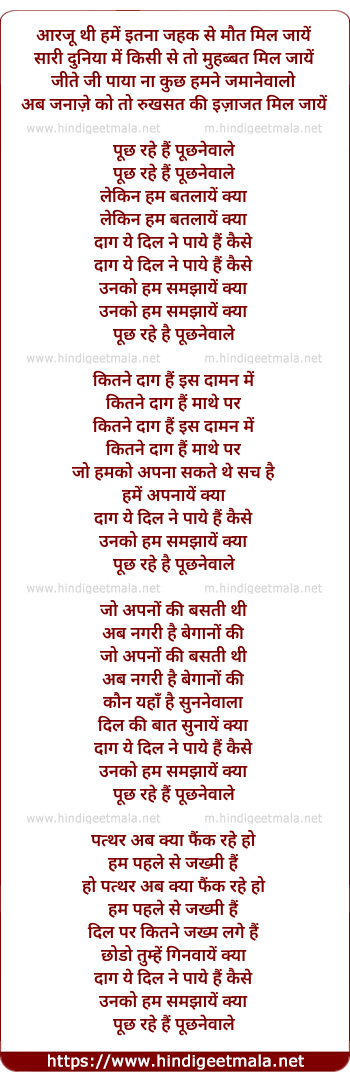 Lyrics of Puchh Rahe Hai Puchhanewaale - पूछ रहे हैं पूछनेवाले