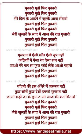 Lyrics of Pukaro Mujhe Phir Pukaro - पुकारो मुझे फिर पुकारो