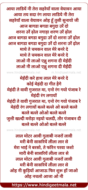 mehndi te vaavi gujarat maa,aino rang gayo punjab re