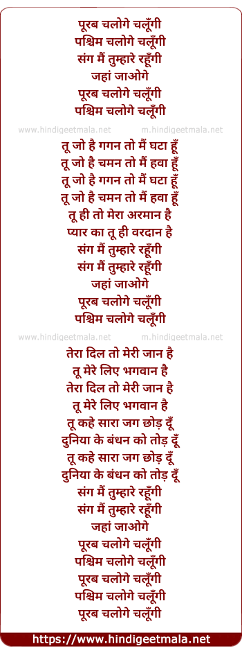 Poetic Translation - Lyrics of Purab Chaloge Chalungi