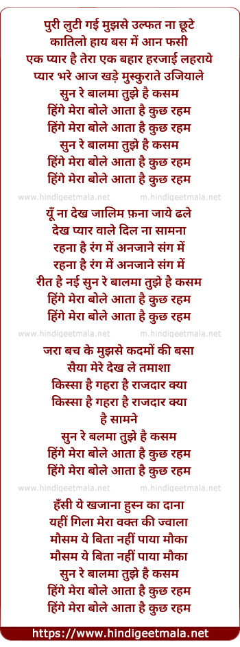 Lyrics of Puri Lut Gayi Mujhse Ulfat Na Chute - पुरी लुटी गई मुझसे उल्फत ना छूटे