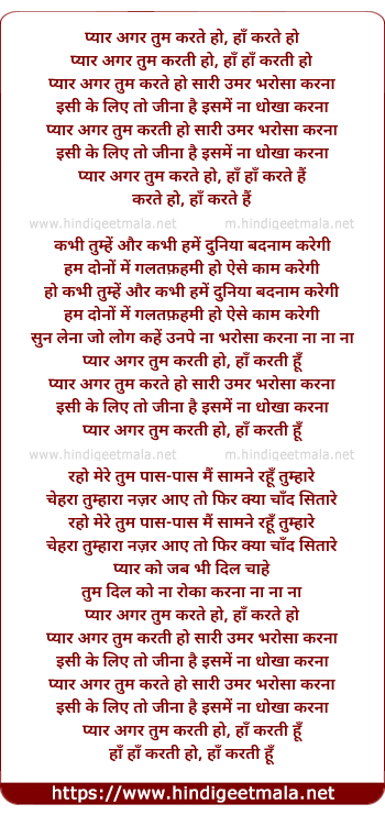 Lyrics of Pyaar Agar Tum Karate Ho - प्यार अगर तुम करते हो