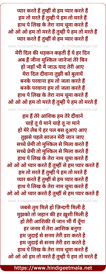 Lyrics of Pyaar Karate Hai Tumhi Se - प्यार करते हैं तुम्हीं से