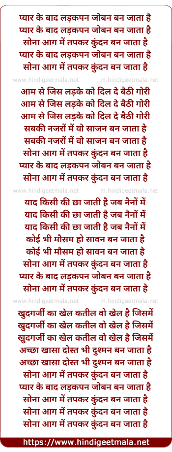 Lyrics of Pyaar Ke Baad - प्यार के बाद लड़कपन जोबन बन जाता है