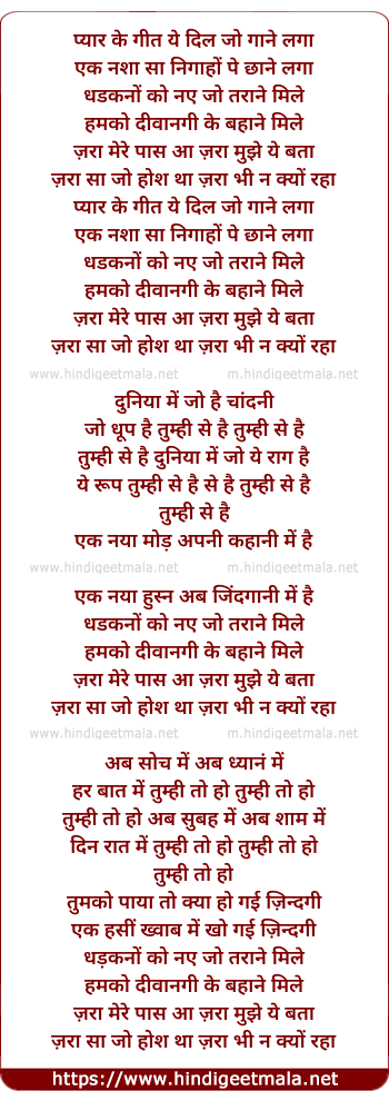 Lyrics of Pyaar Ke Git Ye Dil Jo Gaane Lagaa - प्यार के गीत ये दिल जो गाने लगा