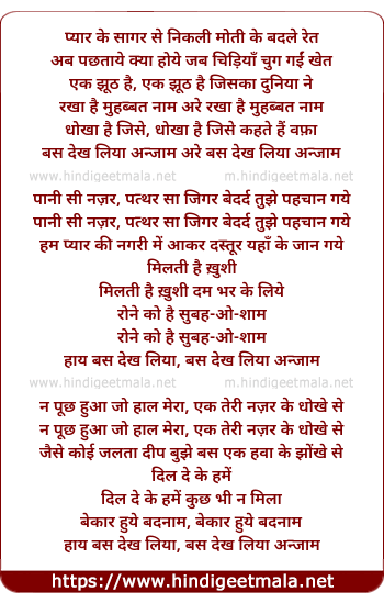 haay bas dekh liya, bas dekh liya anjaam
