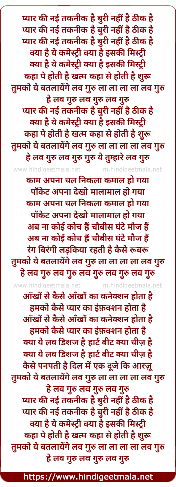 Lyrics of Pyaar Ki Nai Taknik - प्यार की नई तकनीक
