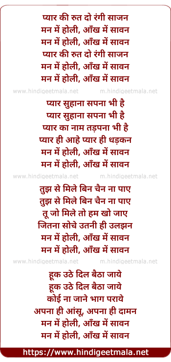 Lyrics of Pyaar Ki Rut Dorangi - प्यार की रुत दो रंगी साजन