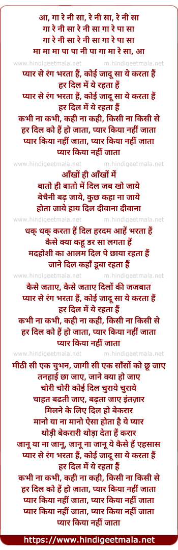 Lyrics of Pyaar Kiya Nahee Jaata - प्यार किया नहीं जाता