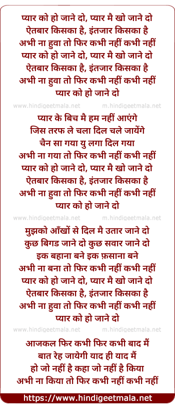 Lyrics of Pyaar Ko Ho Jaane Do - प्यार को हो जाने दो