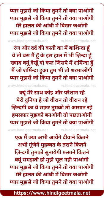 Lyrics of Pyaar Mujhse Jo Kiya Tumne To Kya Paaogi - प्यार मुझसे जो किया तुमने तो क्या पाओगी