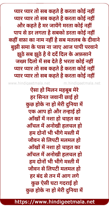 Lyrics of Pyaar Pyaar To Sab Kehte Hain - प्यार प्यार तो सब कहते है