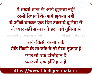Lyrics of Pyaar Toh Ik Imtehaan Hai - प्यार तो एक इम्तिहान हैं