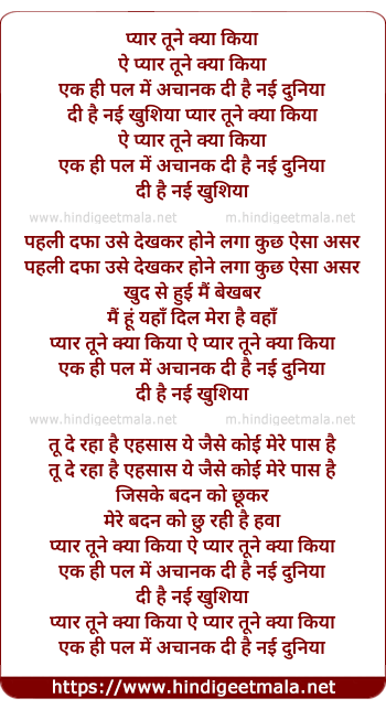 Lyrics of Pyaar Tune Kya Kiya (Sad) - प्यार तूने क्या किया