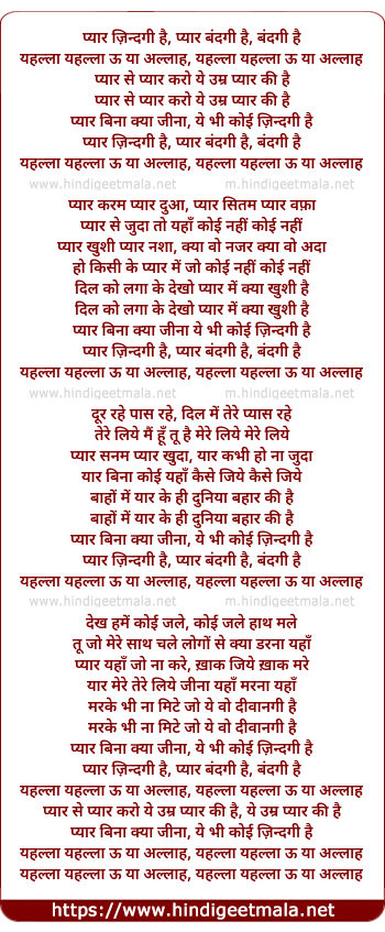 Pyar Zindagi Hai Pyar Bandagi Hai Bandagi Hai - प्यार ज़िन्दगी है, प्यार बंदगी है, बंदगी है