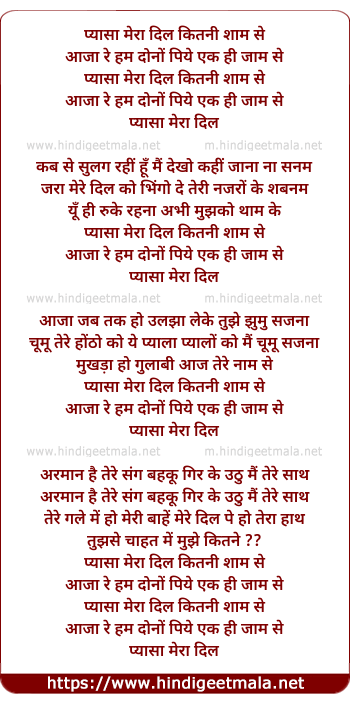 Lyrics of Pyaasa Mera Dil Kitani Shaam Se - प्यासा मेरा दिल कितनी शाम से