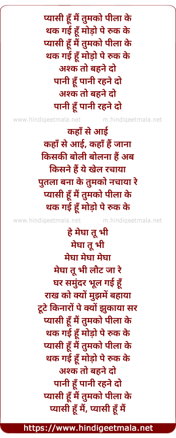 Lyrics of Pyaasi - प्यासी हूँ मैं तुमको पीला के