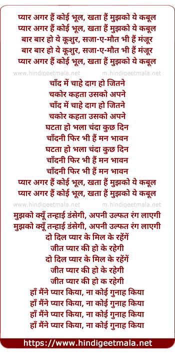 Lyrics of Pyar Agar Hai Koi Bhool - प्यार अगर हैं कोई भूल