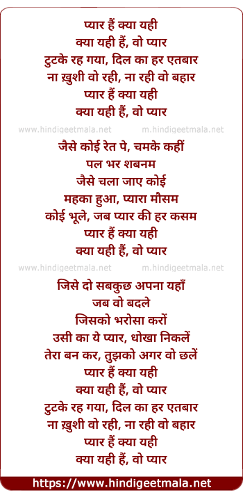 Lyrics of Pyar Hai Kya Yahi (Sad) - प्यार हैं क्या यही