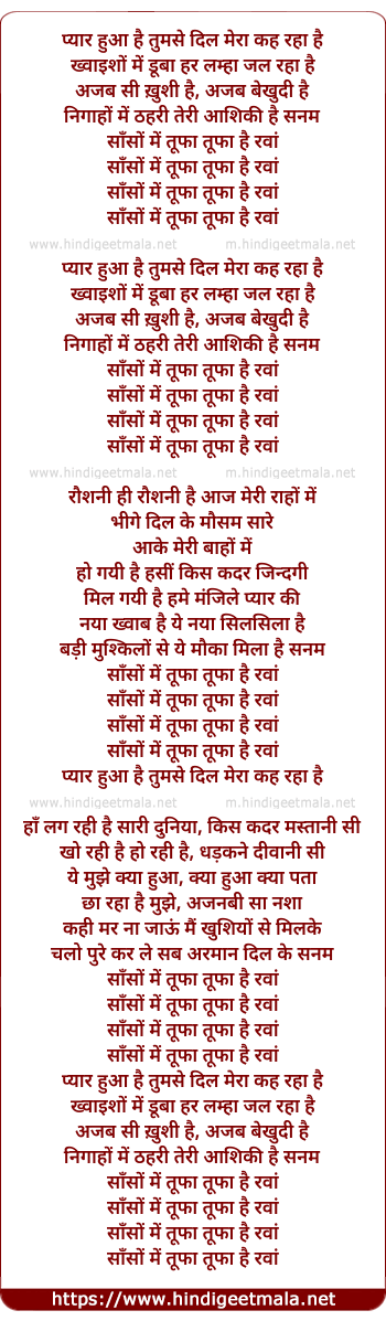 Poetic Translation - Lyrics of Pyar Hua Hai - प्यार हुआ है