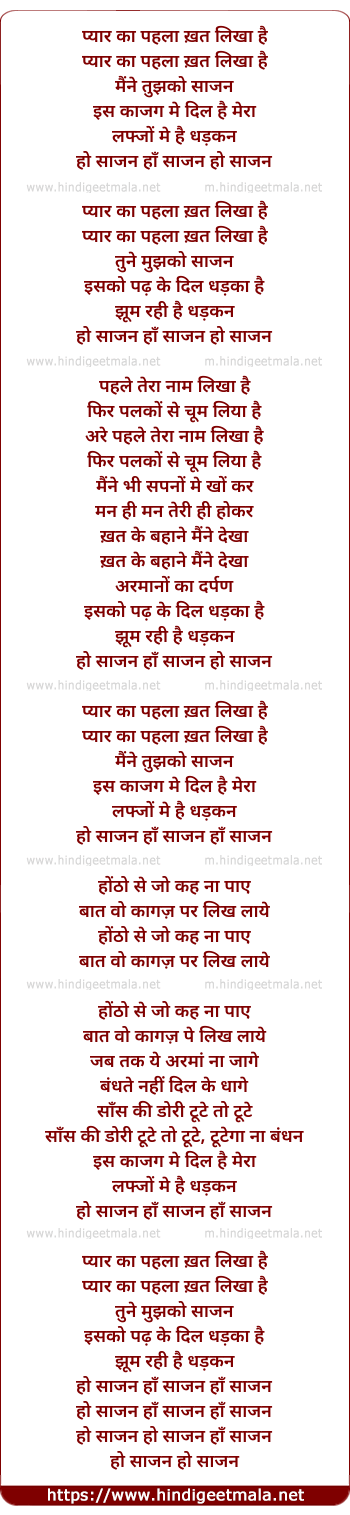Lyrics of Pyar Ka Pehla Khat Likha Hai - प्यार का पहला ख़त लिखा है