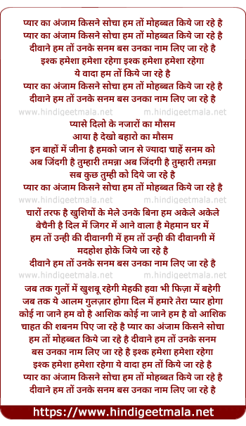 Lyrics of Pyar Kaa Anjam Kisne Socha - प्यार का अंजाम किसने सोचा