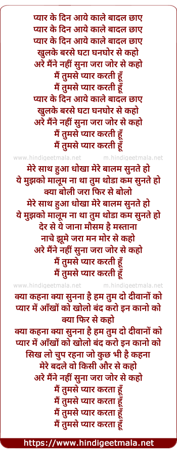 Lyrics of Pyar Ke Din Aaye Kale Badal Chhaye - प्यार के दिन आये काले बादल छाये