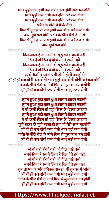 Lyrics of Pyar Mujhe Kab Dogi - प्यार मुझे कब दोगी