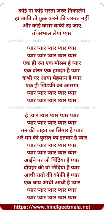 Lyrics of Pyar Pyar Pyar Pyar - प्यार प्यार प्यार प्यार