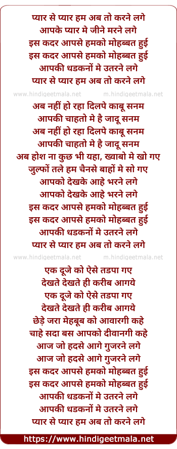 Lyrics of Pyar Se Pyar Hum Ab To Karne Lage - प्यार से प्यार हम अब तो करने लगे